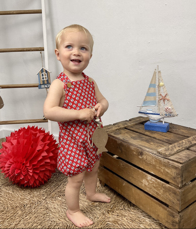 Este peto de bebé con tirantes y pantalón corto está diseñado con goma en las piernas para ofrecer un ajuste cómodo y seguro. Su diseño práctico facilita el movimiento del bebé, mientras que el tejido suave garantiza delicadeza en la piel. Ideal para mantener a tu pequeño cómodo durante todo el día.