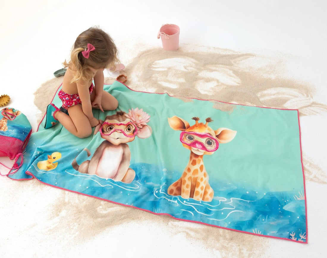 Toalla de playa jirafa y mono